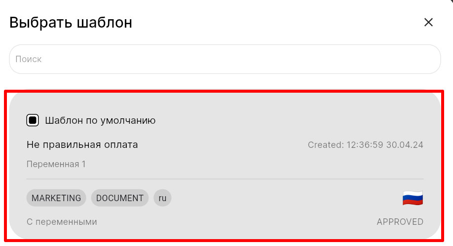 Диалоги в WhatsApp Business API можно начать только с шаблонных сообщений, которые нужно самостоятельно составлять и отправлять на модерацию. Подробнее о составлении шаблонного сообщения в статье «Как создать шаблон сообщения WhatsApp business API».