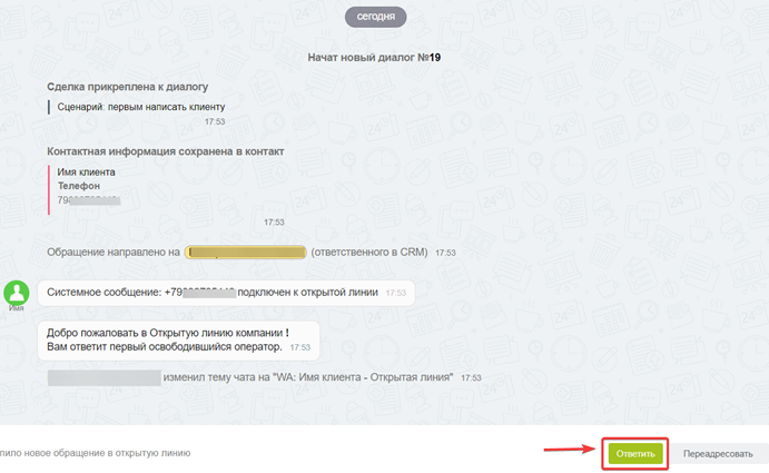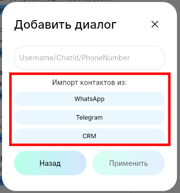 Новый диалог из контактов мессенджера или CRM