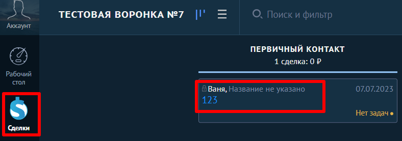 1. Перейдите в раздел «Сделки» и выберите нужную сделку.