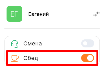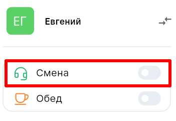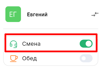 - Смена открыта — показывает, что человек сейчас на рабочем месте. Рядом с именем сотрудника отобразятся наушники с микрофоном. Ему можно передать диалог, назначив его ответственным.