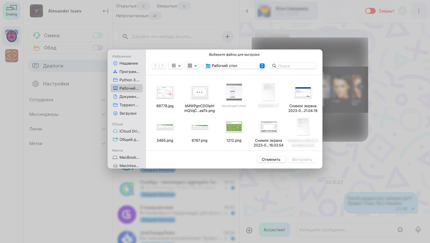 Из единого окна мессенджеров можно отправлять файлы. Это можно сделать одним из трех способов: