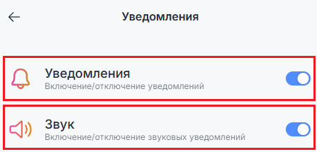 4. Чтобы включить или отключить уведомления, а также звук уведомлений, установите переключатель в нужное положение:
