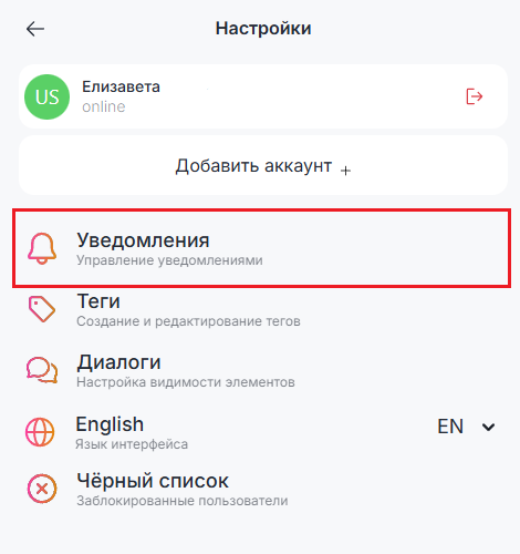 Возможность отключения уведомлений в отдельном чате будет доступна, если включены общие уведомления для всех чатов.