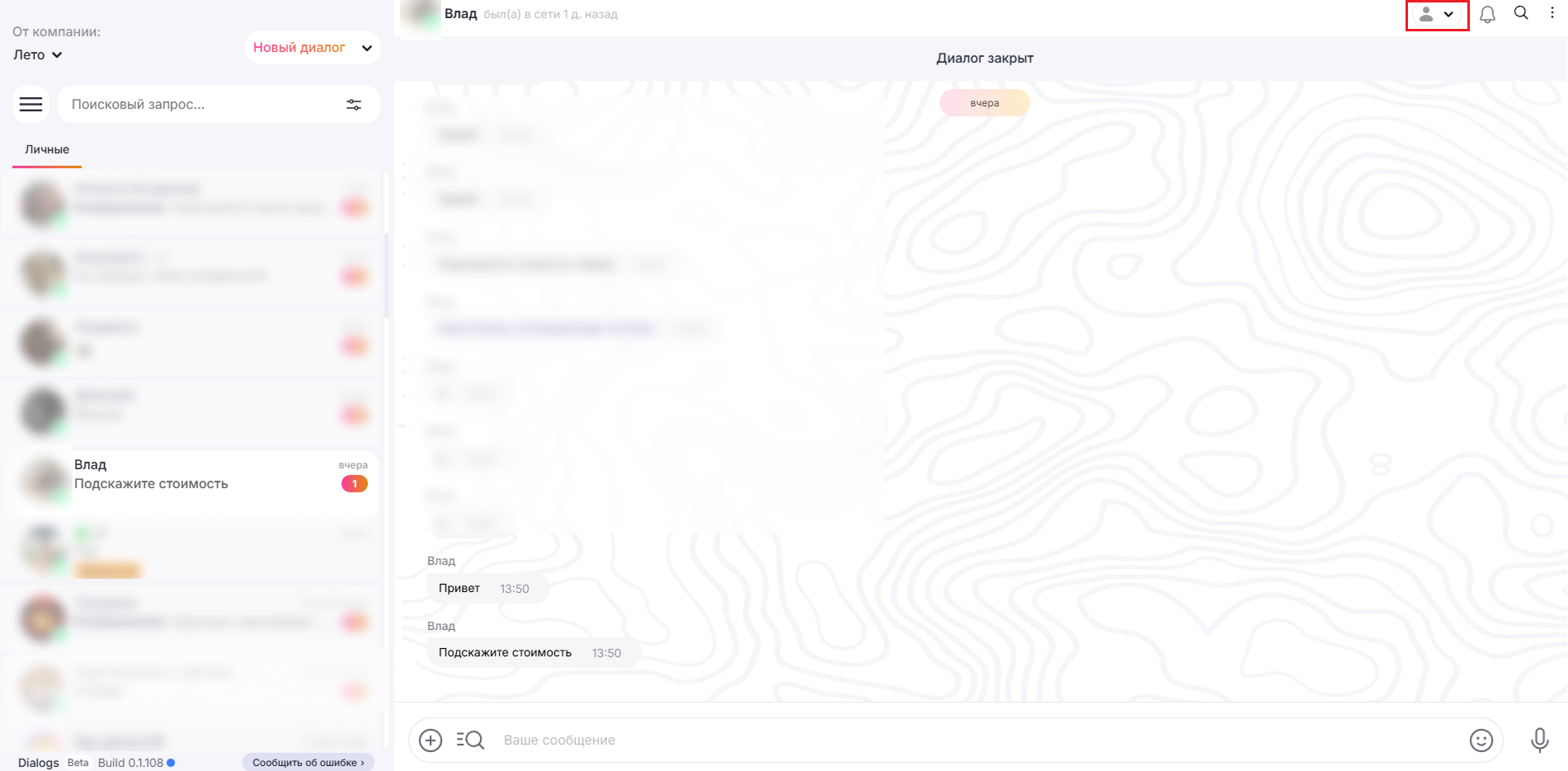1. Перейдите в нужный диалог.