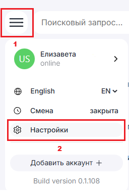 1. В окне Dialogs нажмите на три горизонтальные полоски, перейдите в раздел «Настройки».