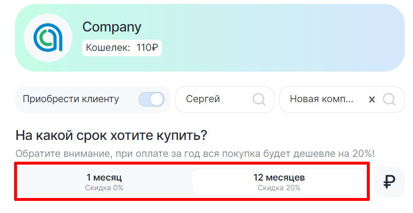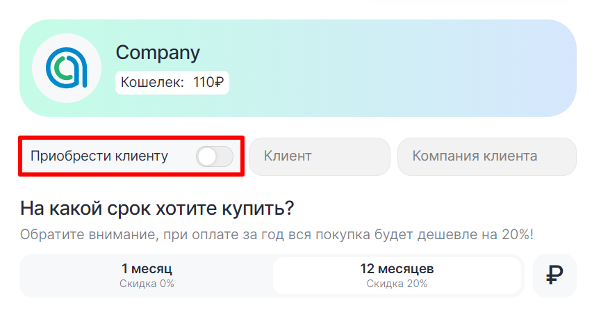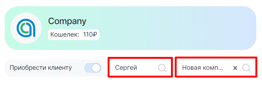 4. Справа от ползунка выберите клиента и его компанию;