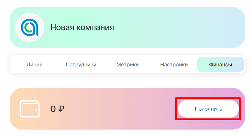 Пополнение кошелька компании