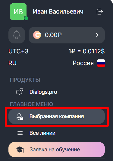 1. В меню слева нажмите «Выбранная компания».