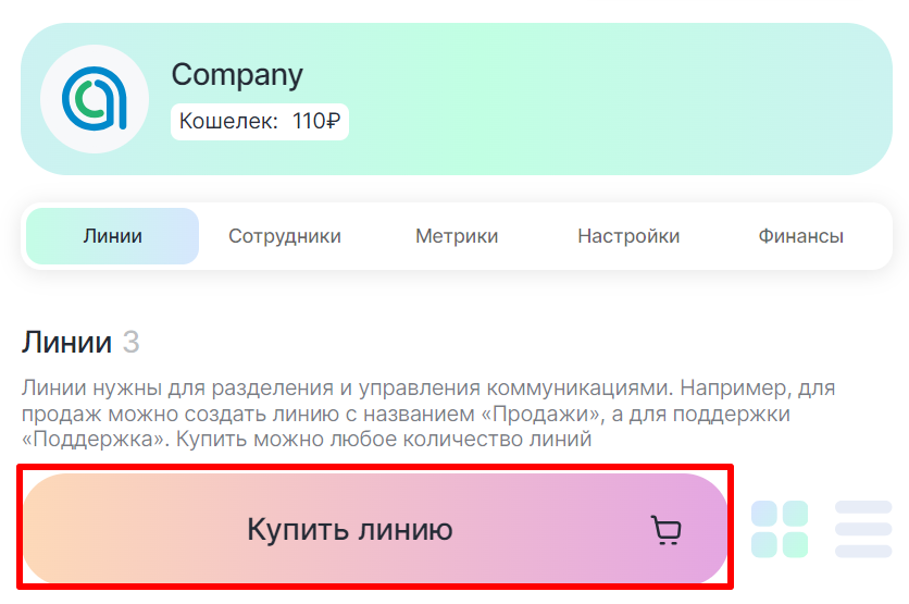 Как оплатить линию клиента с кошелька компании
