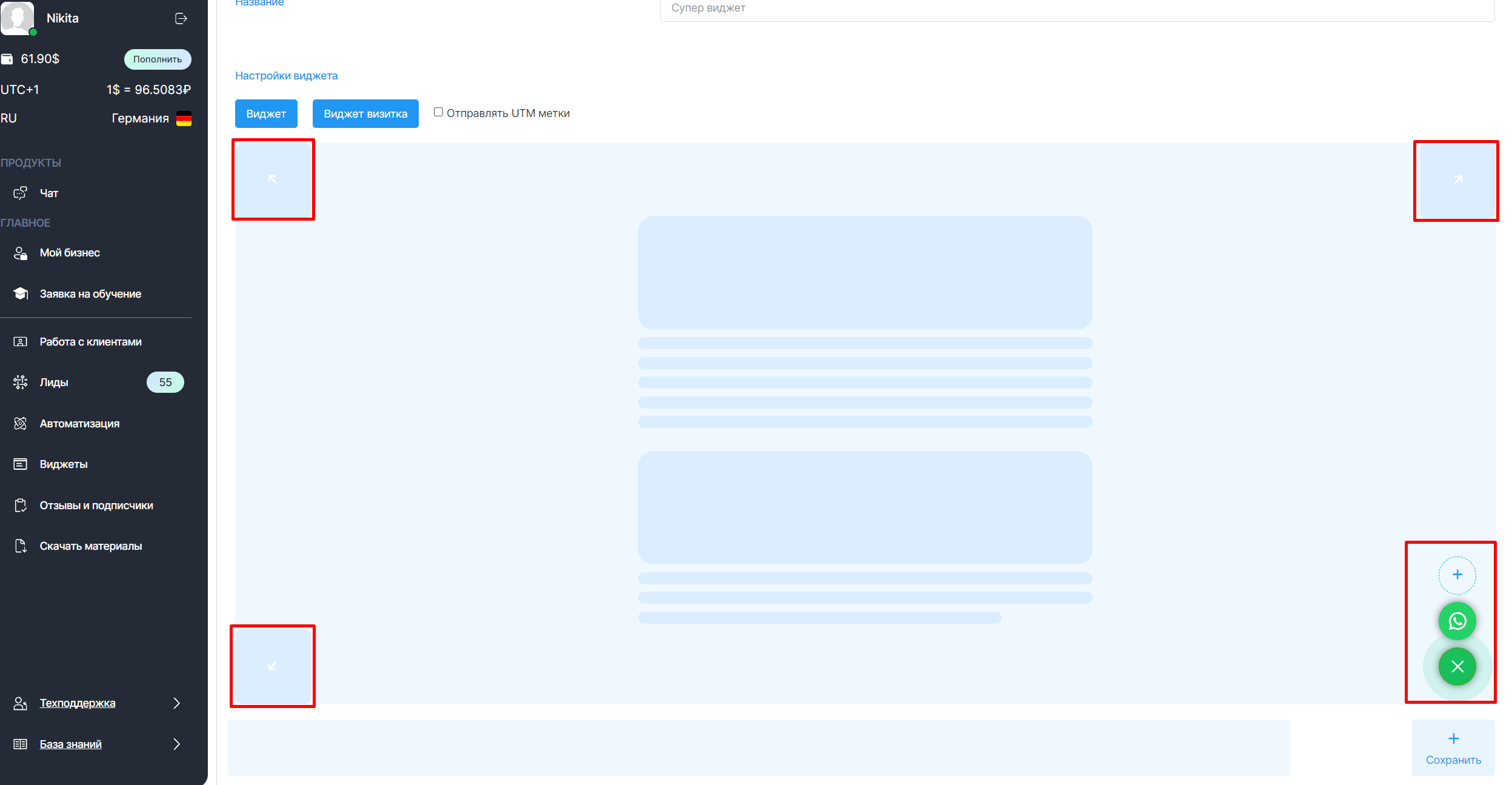 4. Выберите такое положение виджета на сайте, чтобы он смотрелся наиболее выигрышно и был заметен для пользователя. Помните, что виджет должен быть всегда под рукой. Доступно 4 положения в разных углах страницы.