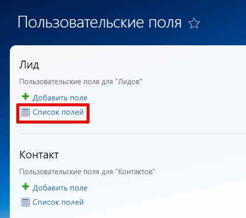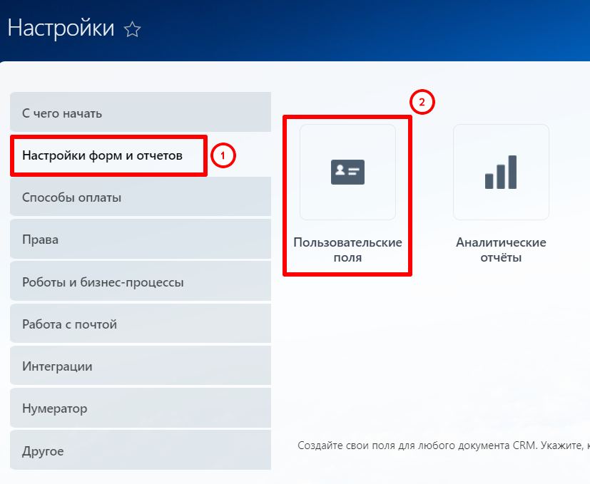 Выберите вкладку «Настройка форм и отчетов» — «Пользовательские поля».