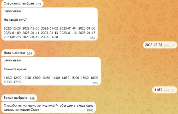 Пример работы бота «Запись на прием»