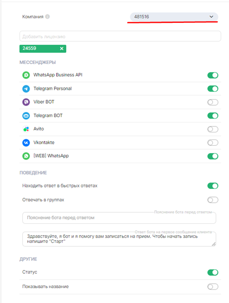 Важно: Компания должна быть привязана к вашему филиалу в YClients и совпадать с основными настройками Бота.