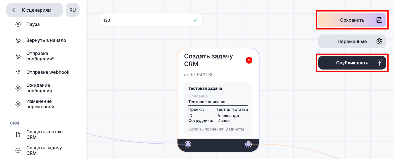 6. Сохраните и опубликуйте сценарий.