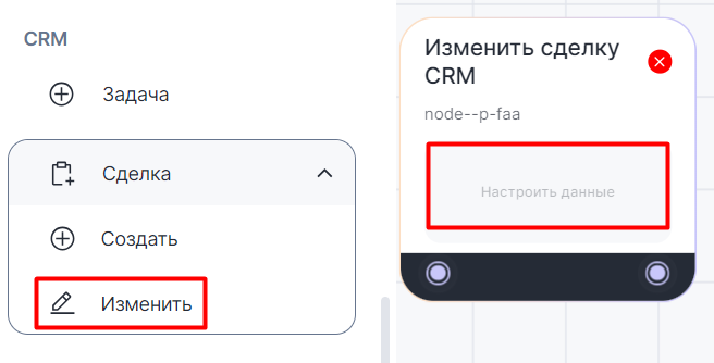 Блок «Изменить сделку CRM»