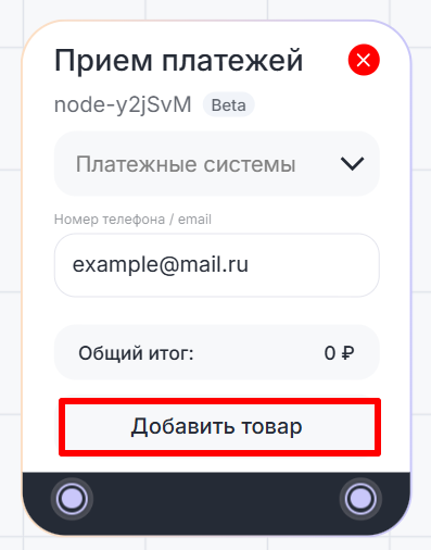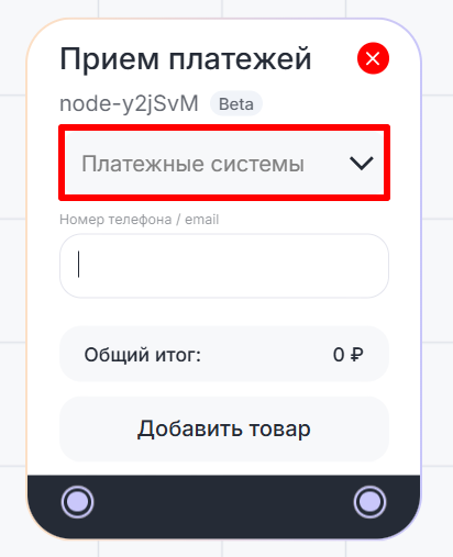 Блок «Прием платежей» позволяет добавить товар и принимать оплату клиента через диалог в чате. Поддерживает платежные системы Т-банк и Робокасса. Блок может понадобиться, например, чтобы в диалоге предложить клиенту купить определенный товар и произвести оплату.
