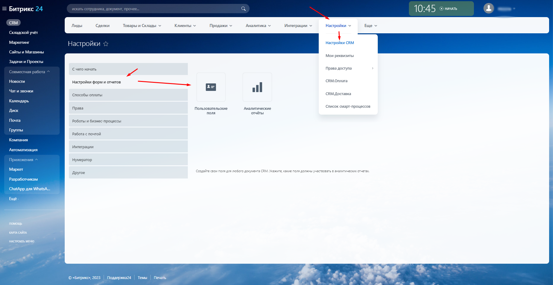 2. В «Настройке прав» выберите «CRM».