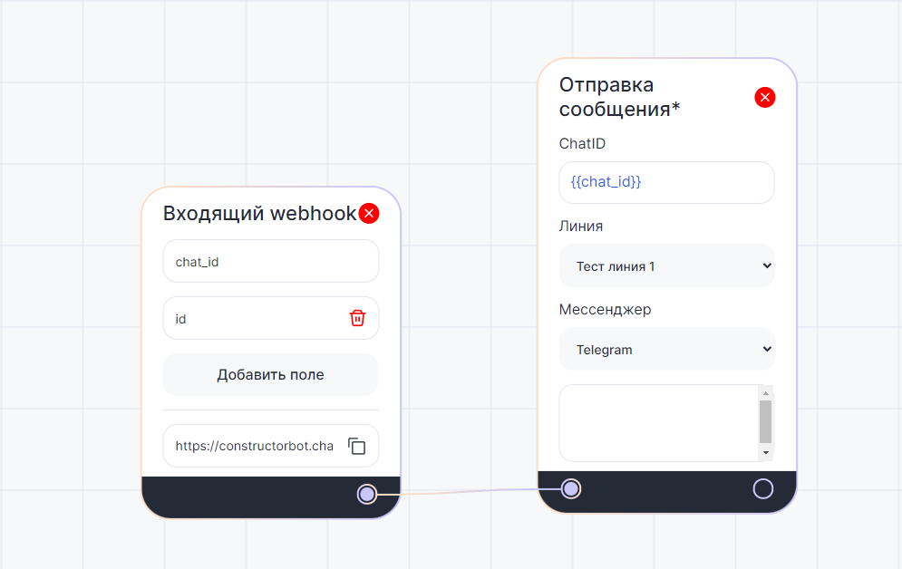- В «ChatID» — переменную chat_id;