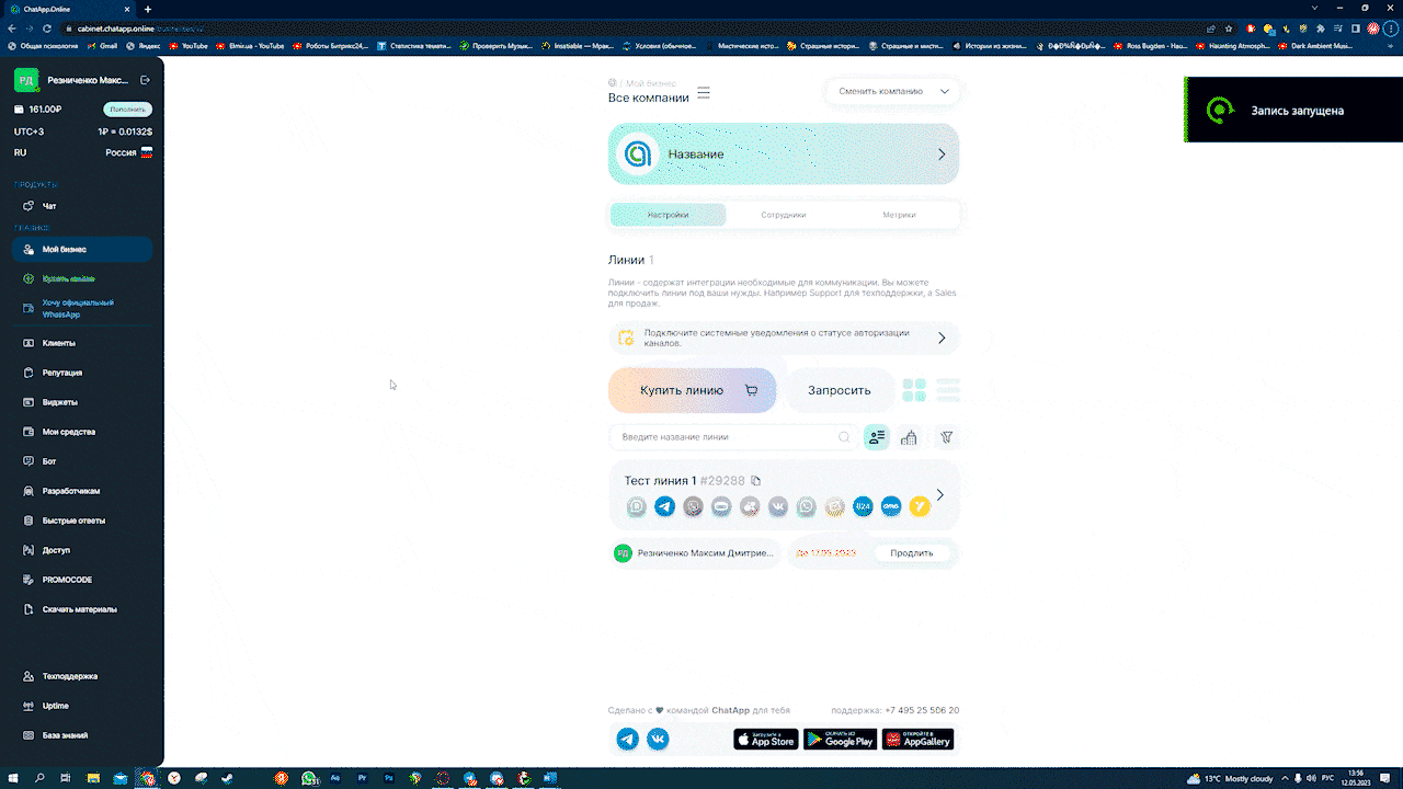 1. Зайдите в личный кабинет ChatApp.