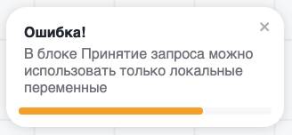 Важно! Системные переменные нельзя использовать с блоком Входящий Webhook. При ручном вводе системных переменных в блок появляется следующая ошибка: