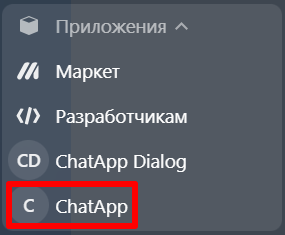 6. Выберите «Приложения» — «ChatApp» в левом меню Битрикс24.