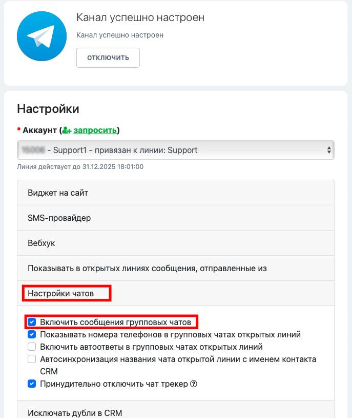 Чтобы отключить входящие сообщения из групп для каждой открытой линии, вы должны:
