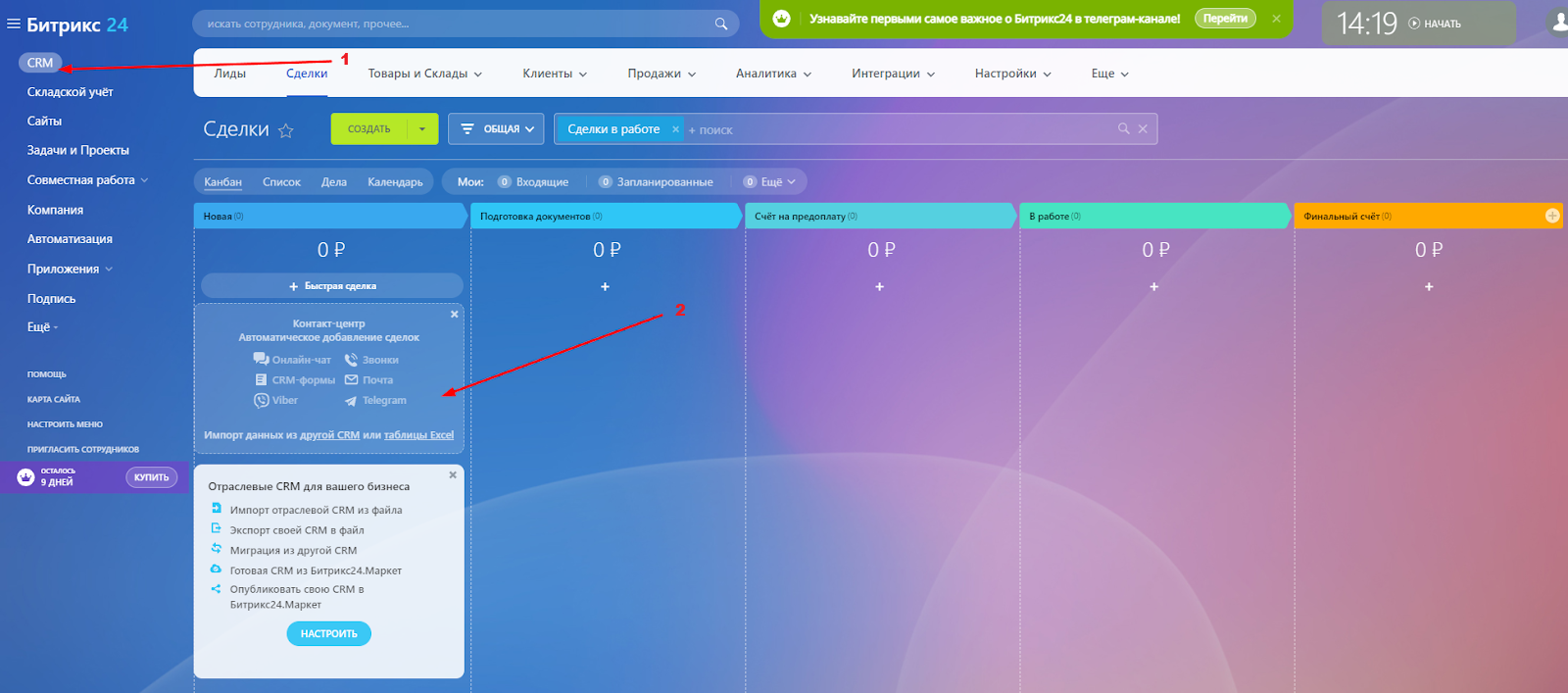 Вы также можете перейти в «Контакт-центр», введя в поисковой строке Битрикс24: «Контакт-центр».