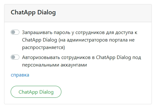 Выключено Любой сотрудник сможет открыть ChatApp Dialog из Битрикс24 без авторизации под администратором.