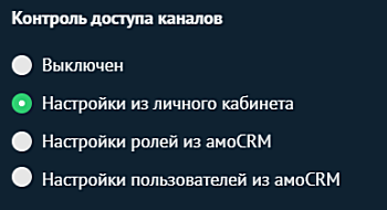 Для того, чтобы привязать настройки доступа к каналам из ChatApp к amoCRM, выберите пункт «Настройки из личного кабинета».