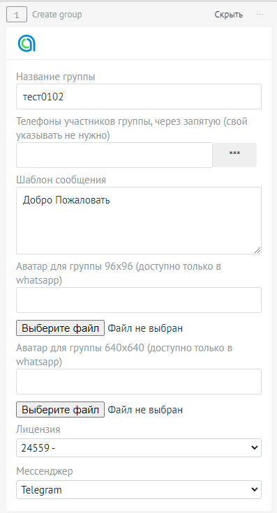 • Введите телефоны участников группы, чтобы сразу добавить их.