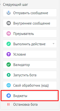 3. В настройках выбираем виджеты