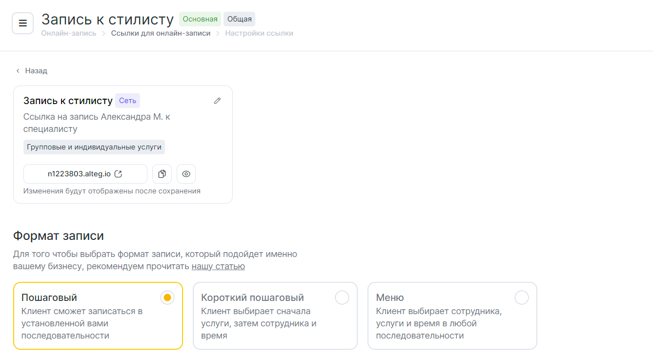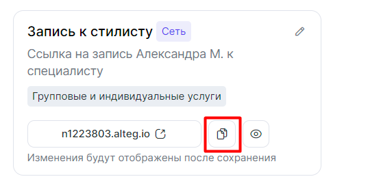 5. Ссылку на онлайн-запись можно скопировать. Если запись общего доступа, ей можно поделиться со всеми сотрудниками, либо настроить доступ для конкретного аккаунта.