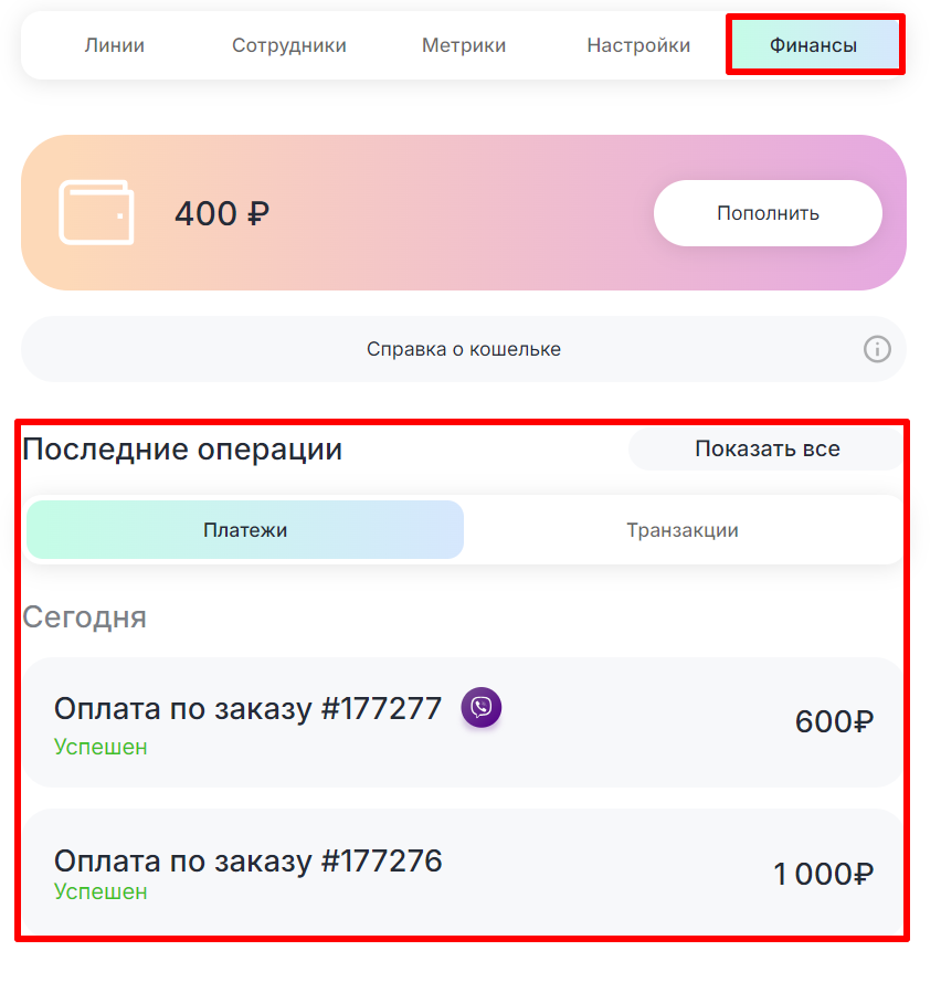 - Перейдите в раздел «Финансы» → «Последние операции».