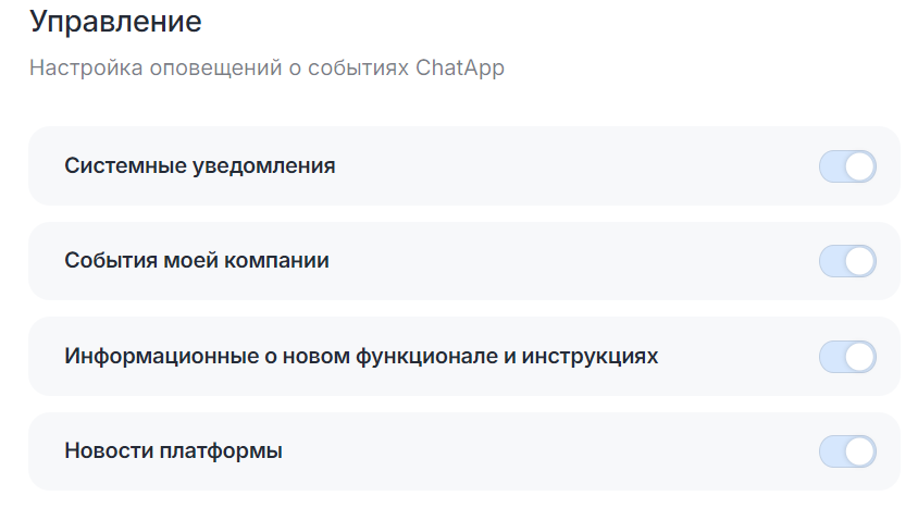 • Личный кабинет ChatApp (колокольчик)  — в раздел «Уведомления» Личного кабинета.