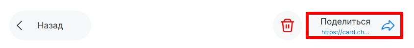 6. Чтобы поделиться визиткой, нажмите «Поделиться» и скопируйте ссылку на визитку.