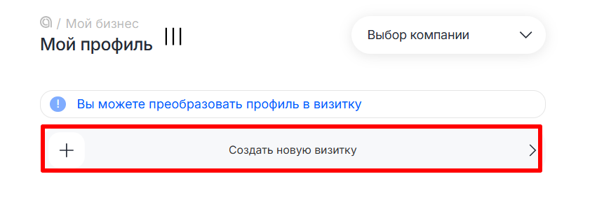 4. Нажмите «Создать новую визитку».