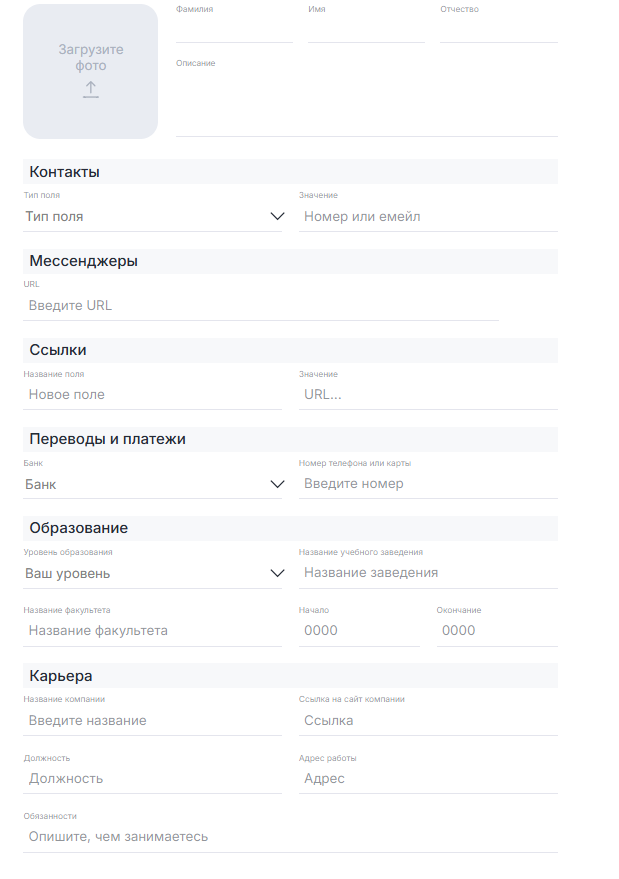 5. Заполните личные данные в визитке.