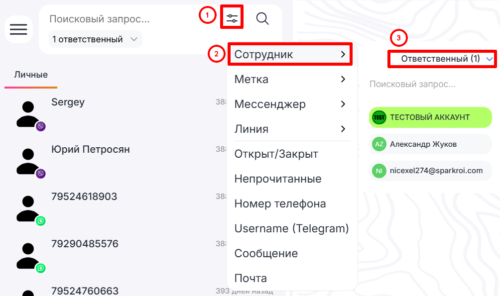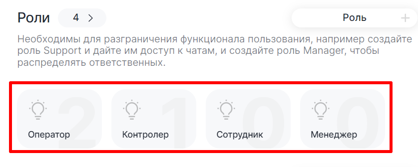 В Личном кабинете можно изменять разрешения для сотрудников: доступ к просмотру и редактированию чатов, аналитике.