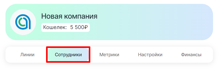 2. Нажмите на вкладку «Сотрудники».