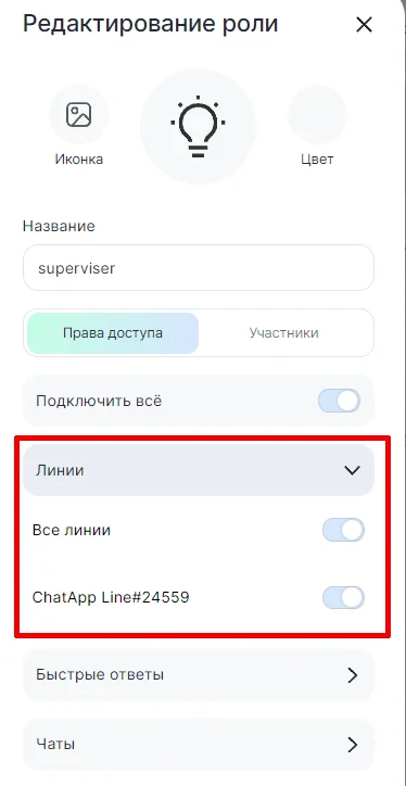 Настройка доступа сотрудников к линиям
