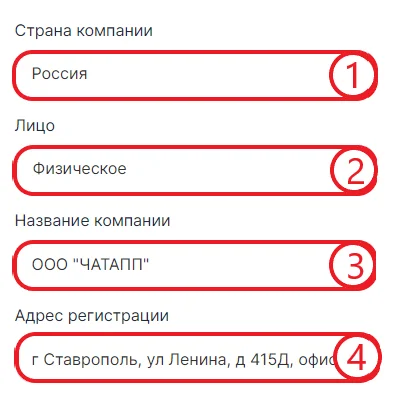3. Выберите страну компании.