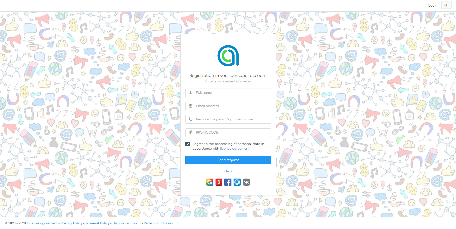 - Check the box for consent to the processing of personal data in accordance with the license agreement;