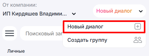 1. В Dialogs нажмите «Новый диалог».