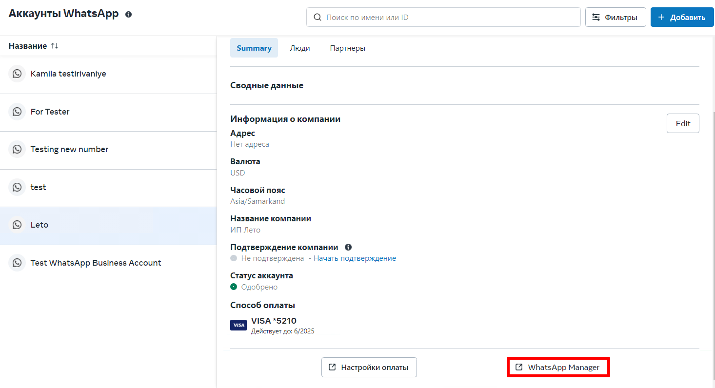 3. Нажмите «WhatsApp Manager» в правом нижнем углу.