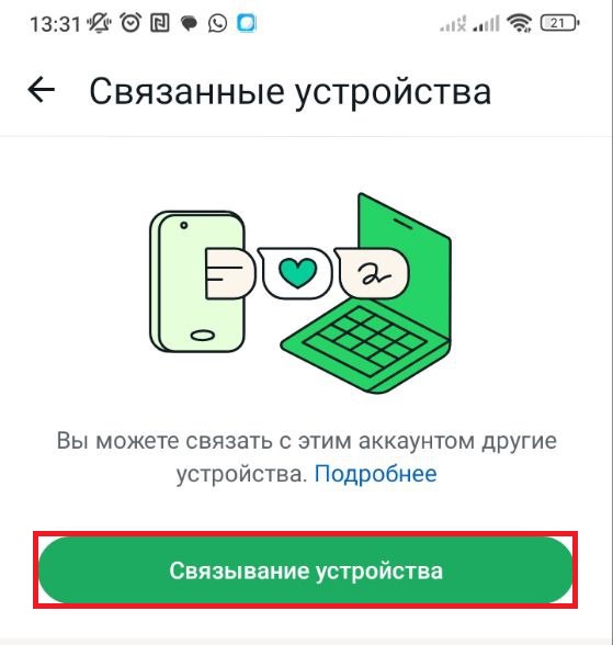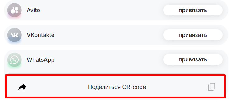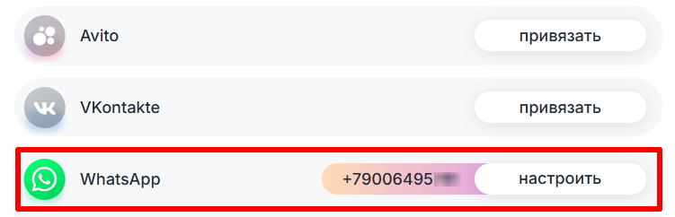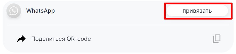 2. Нажмите на кнопку «Привязать» напротив «WhatsApp».