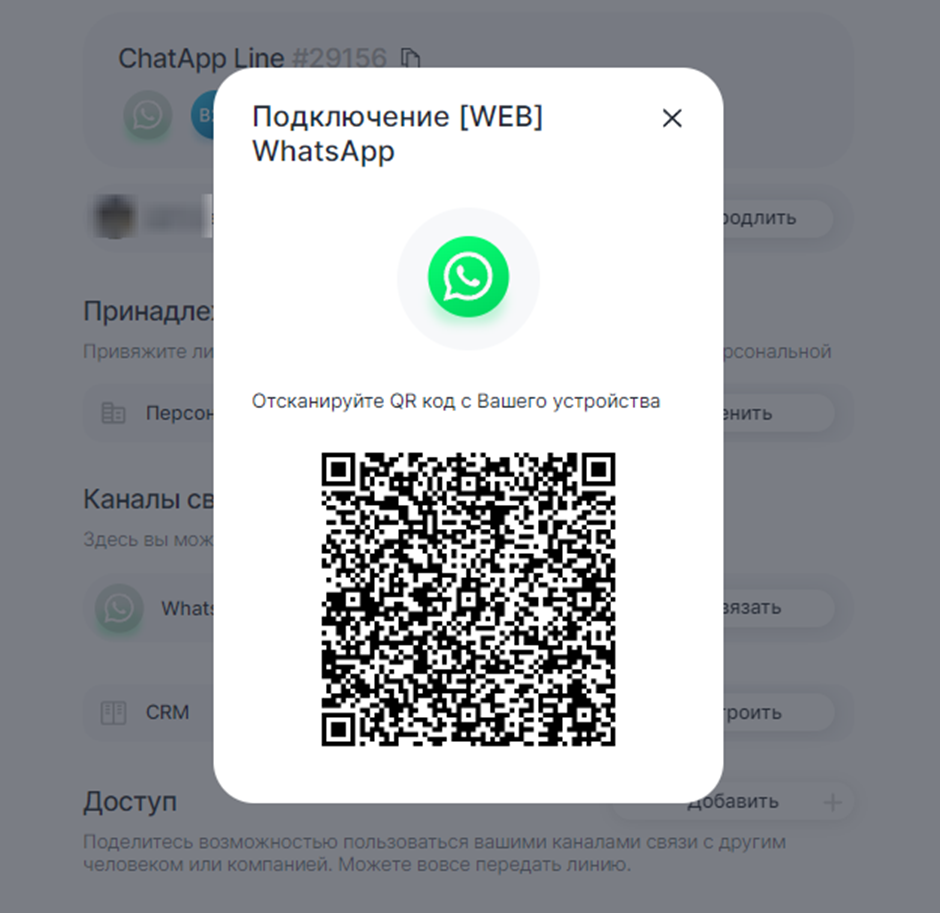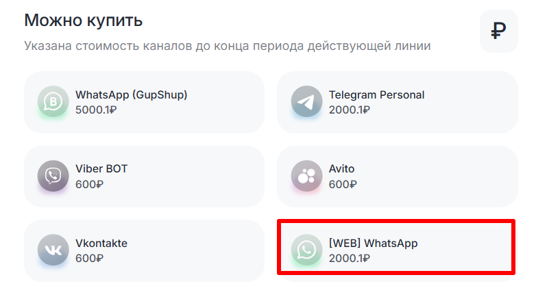 Для использования WhatsApp WEB нужно выбрать канал «WhatsApp» при покупке линии.