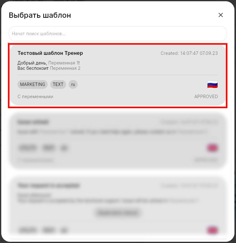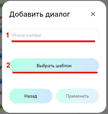 5. Введите номер телефона пользователя и нажмите на кнопку «‎Выбрать шаблон».