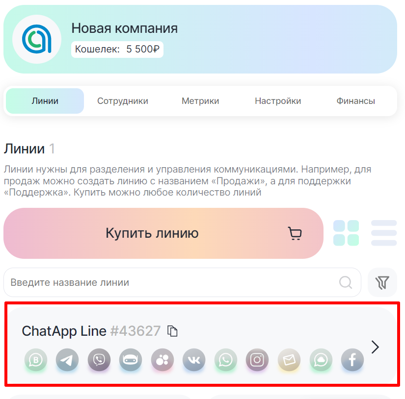 1. Перейдите в раздел «Выбранная компания». Нажмите на окно линии.