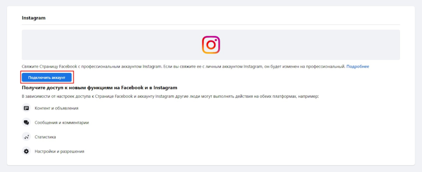 Связать бизнес-аккаунт Instagram* с бизнес-страницей на Facebook*