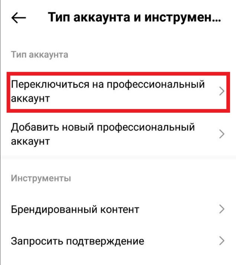 4. Выберите «Переключиться на профессиональный аккаунт». Нажмите «Продолжить».